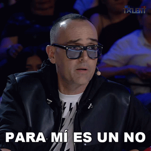 Risto Mejide delivers his iconic 'Para Mi Es Un No' line, wearing glasses and a black leather jacket.