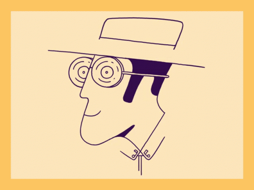 Animated drawing of a man with a hat and glasses, appearing paranoid and hypnotized.