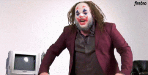 Paraskeuas, dressed as the Joker, shouts 'ETSI!' with an intense expression. This scene is from Netwix.