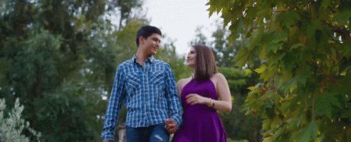 A happy couple, featured in a music video by Ulices Chaidez, walks hand-in-hand and smiles in a park.
