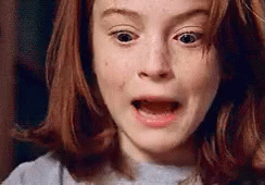 Young Lindsay Lohan delivers an iconic scream from the movie 'The Parent Trap', showing a surprised and frightened expression.