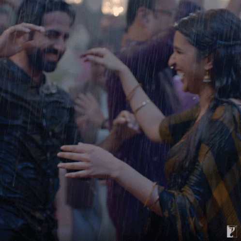 Parineeti Chopra and Ayushmann Khurrana share a joyful moment, dancing and hugging in the rain.