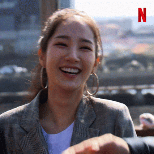 Park Min Young smiling brightly in a plaid jacket, featured in the Netflix show Busted.