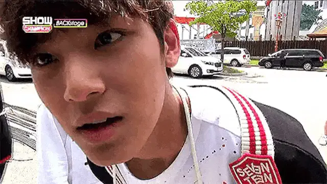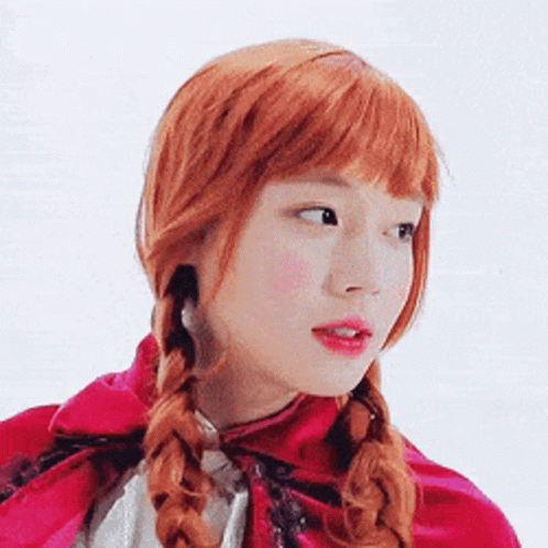Park Jihoon from Wanna One cosplaying as Anna from Frozen, featuring red braided hair and a red cape.