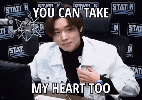 Parkjihoon from Weak Hero, sitting by a microphone, with the caption 'You Can Take My Heart Too'.