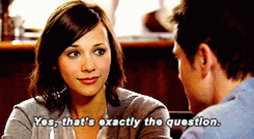 Ann Perkins (Rashida Jones) from Parks and Rec says "Yes, that's exactly the question" during a conversation.