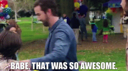 Aubrey Plaza as April Ludgate in Parks and Recreation, enthusiastically exclaiming 'Babe, that was so awesome.'