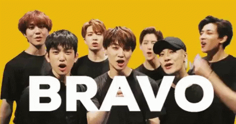 A group of young men celebrate with confetti as the word 'Bravo' appears on a vibrant yellow background.