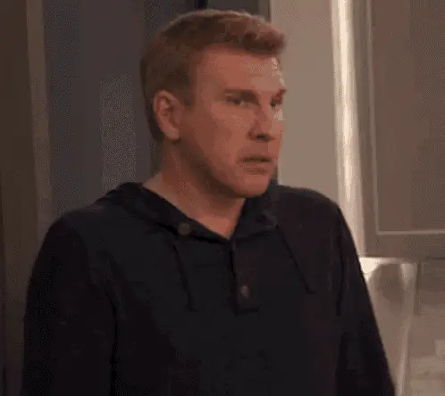 Partrick performs a classic facepalm gesture in a Star Trek spaceship, showing exasperation.