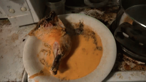 Pasi Viheraho prepares a meal, placing a chicken leg with orange sauce on a plate into a microwave for heating.