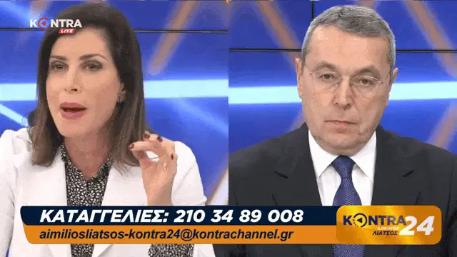 Greek politician Costas Simitis delivers a speech, followed by festive New Year's Eve celebrations, with 'Happy New Year' overlay.