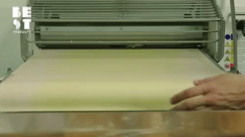A 'Best Products' machine efficiently flattens dough to create lasagna pasta.