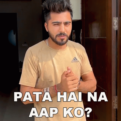 Shivam Sharma asks 'Pata Hai Na Aap Ko?' with a confident expression, wearing an Adidas t-shirt.
