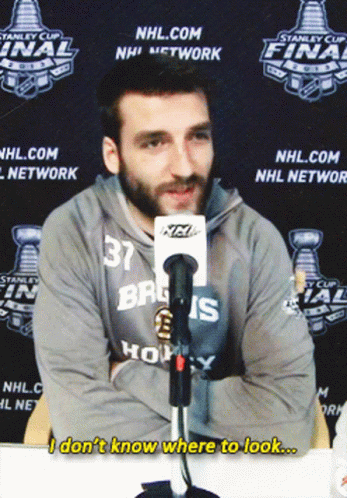 a man speaking into a microphone in front of a stanley cup banner