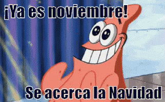 Patricio, from SpongeBob SquarePants, smiles excitedly as the captions announce 'It's already November! Christmas is coming'.