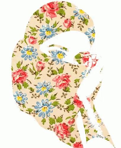 Artistic silhouette of a woman's profile, filled with a beautiful floral pattern, representing a hijab.