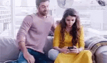 Ranbir Kapoor and Anushka Sharma share a sweet moment on the couch, looking at a phone and embracing.