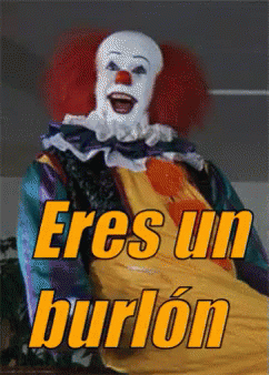 Pennywise the Clown from 'It' laughing with the Spanish text 'Eres un burlón' (You are a mocker) overlaid.