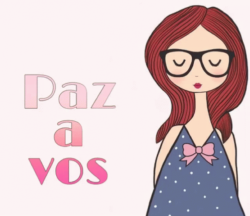 An illustration of a girl with glasses and red hair, with the Spanish phrase 'Paz a vos' (Peace to you) and 'Ishbaj'.