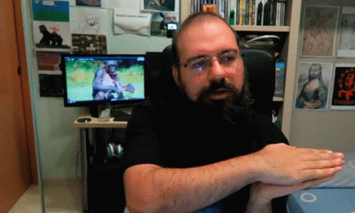 Pazos64 reacts with a vibrant rainbow graphic displaying the Spanish text '¡Cállate!' while sitting at his computer.