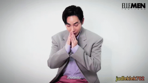 Peck Palitchoke performs a traditional Thai wai greeting, smiles, and introduces himself in this ELLEMEN THAILAND clip.
