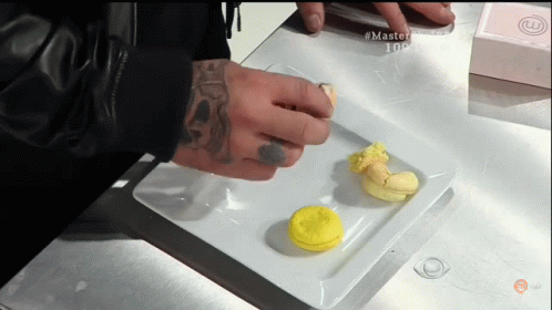Chef Fogaça presents a dish on Masterchef Brazil, featuring macarons and intense judging.