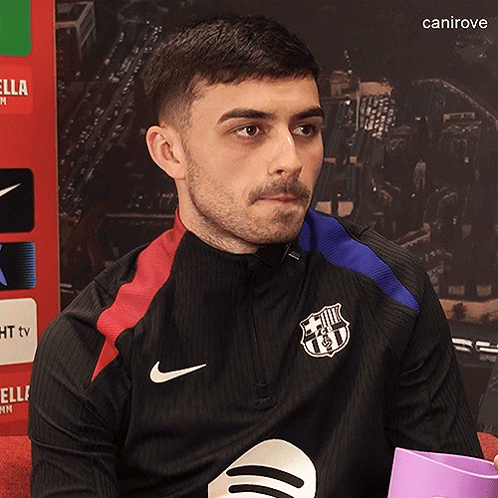 Pedri Gonzalez, wearing an FC Barcelona jacket, looks around with a thoughtful expression.