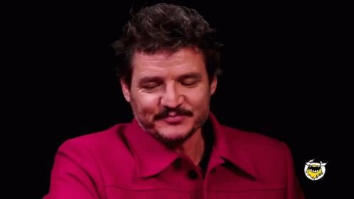 Pedro Pascal, wearing a red shirt, reacts with 'that's a jump' during his appearance on Hot Ones.