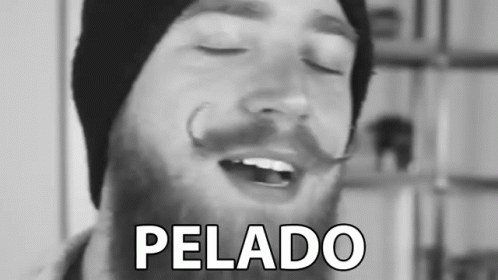 A black and white image of a man with a beard and mustache, with the word 'PELADO' displayed.