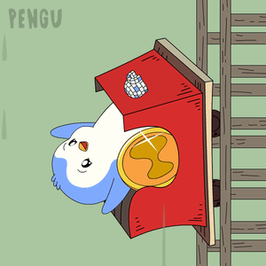a cartoon of a penguin on a roller coaster with the word pengu on the bottom right