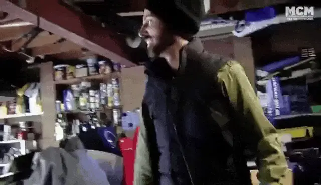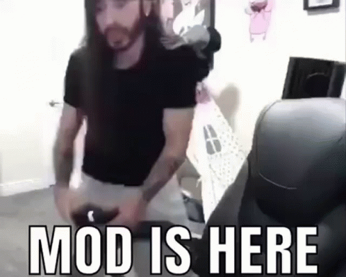 A person reacts wildly to 'MOD IS HERE' on screen, humorously referencing Penguinz0 Discord mods.
