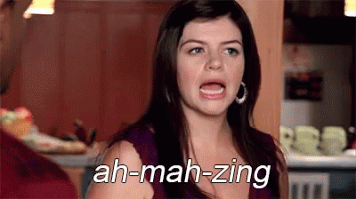 Penny from Happy Endings makes a funny, expressive face while saying 'ah-mah-zing'.