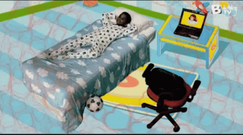 Cirilo from Carrossel relaxing in his room, dreaming with hearts appearing above his head.