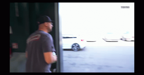 Percy, Tedros, and Teclebrhan in a blurry outdoor scene, featuring a person running past white cars.