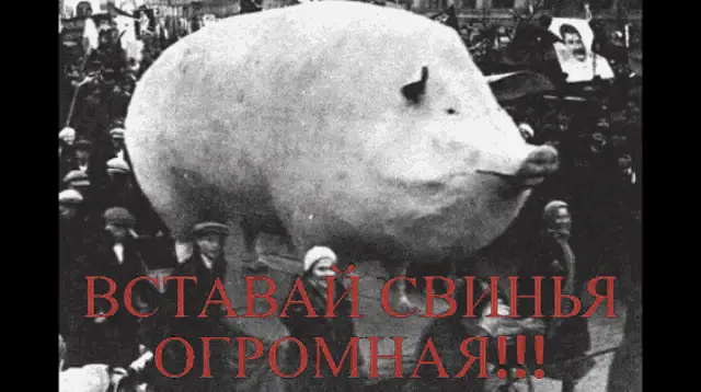 A pig's face with the Ukrainian caption 'Victory will be' displayed on screen, conveying a message of hope.