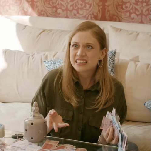Tato Alexander, visibly upset, sits on a couch holding a stack of Mexican pesos and gesturing angrily.