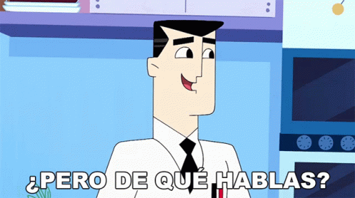 Profesor Utonium from The Powerpuff Girls looks confused, asking '¿Pero De Qué Hablas?' (What are you talking about?).