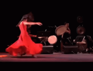 A captivating Persian dance performance featuring a woman in a flowing red dress, spinning gracefully on stage.