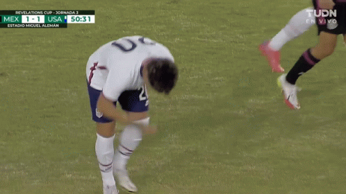 Soccer player D Luna crosses himself on the field during the Revelations Cup match between Mexico and USA.