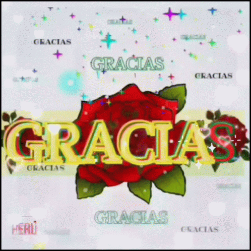 An animated graphic featuring red roses and the word 'Gracias' (Thanks) expressing gratitude for Peru.