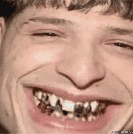 Peso Pluma's face with a distorted smile and damaged teeth, featuring an AnittaPress watermark.
