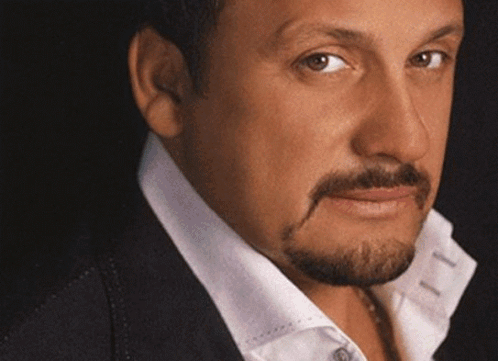 Russian singer Stas Mikhailov performing, holding a microphone, wearing a black jacket.