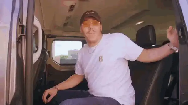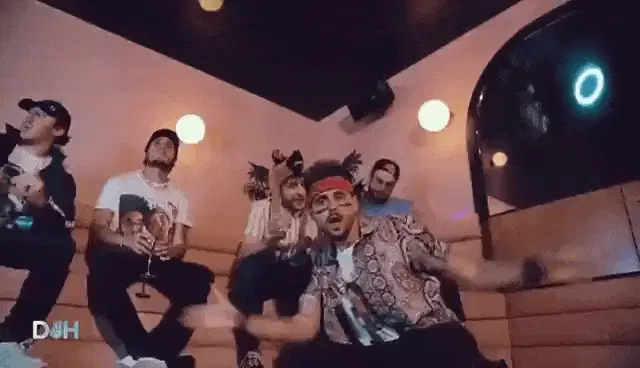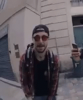 Pex Vso dancing joyfully, making funny faces and sticking his tongue out on a street.