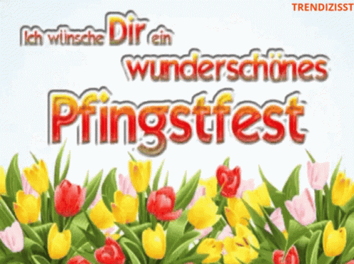 Animated greeting card wishing a beautiful Pentecost, featuring colorful flowers and sparkling stars.