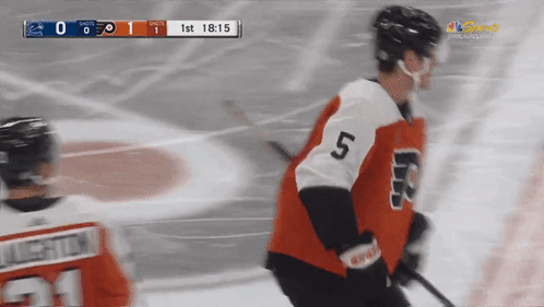 a hockey player with the number 5 on his jersey stands on the ice