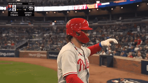 Bryce Harper celebrates a powerful hit for the Philadelphia Phillies, with a 115 MPH hit speed.