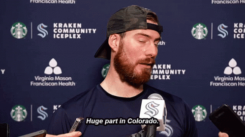 Philipp Grubauer discusses his significant role and experiences in Colorado during a press conference.