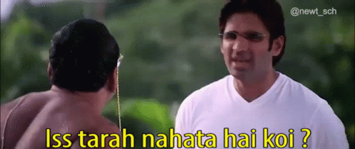 Baburao questions Shyam in Phir Hera Pheri, asking 'Iss tarah nahata hai koi?' about his bathing habits.