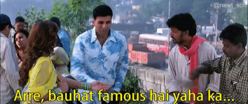 Raju (Akshay Kumar) and Rimi Sen in a memorable scene from Phir Hera Pheri, featuring the famous dialogue.