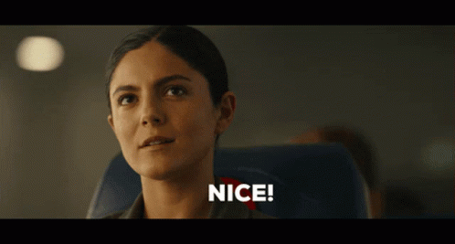 A woman from Topgun reacts with a 'NICE!' on an airplane. Phoenix from Topgun.